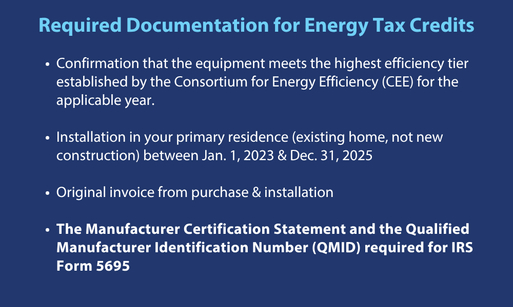 The IRS requires more than proof of purchase for this credit. The equipment must meet defined efficiency standards and be supported by proper documentation. Without this information, your accountant cannot include the credit on your return.